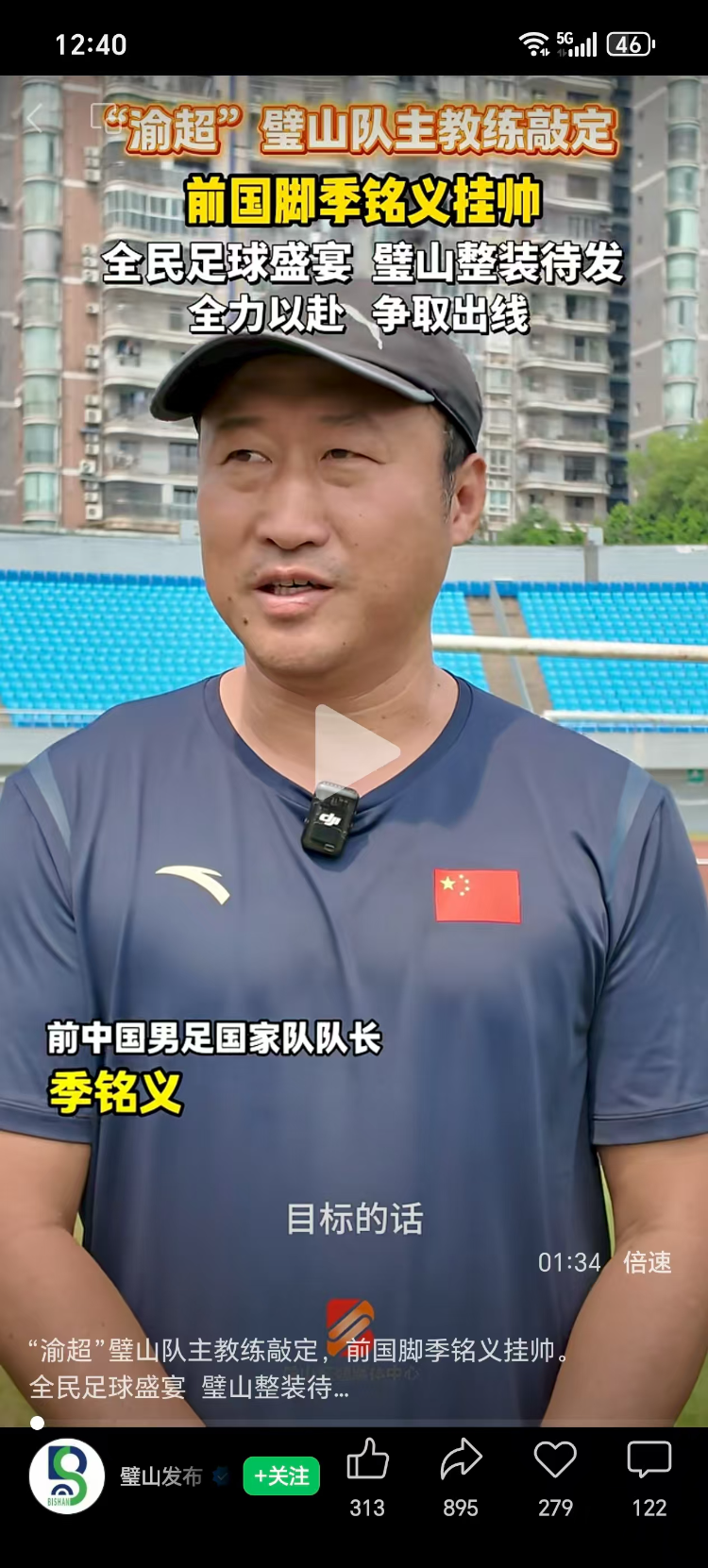 据“璧山发布”消息,“渝超”璧山队主教练目前敲定,前国脚季铭义挂帅。季铭义,中国职业足球运动员,司职后卫,曾是大连实德队队长,以超过300场中国顶级联赛出场次数成为联赛常青树,入选国家队出战23场A级赛事,并担任过国家队队长。